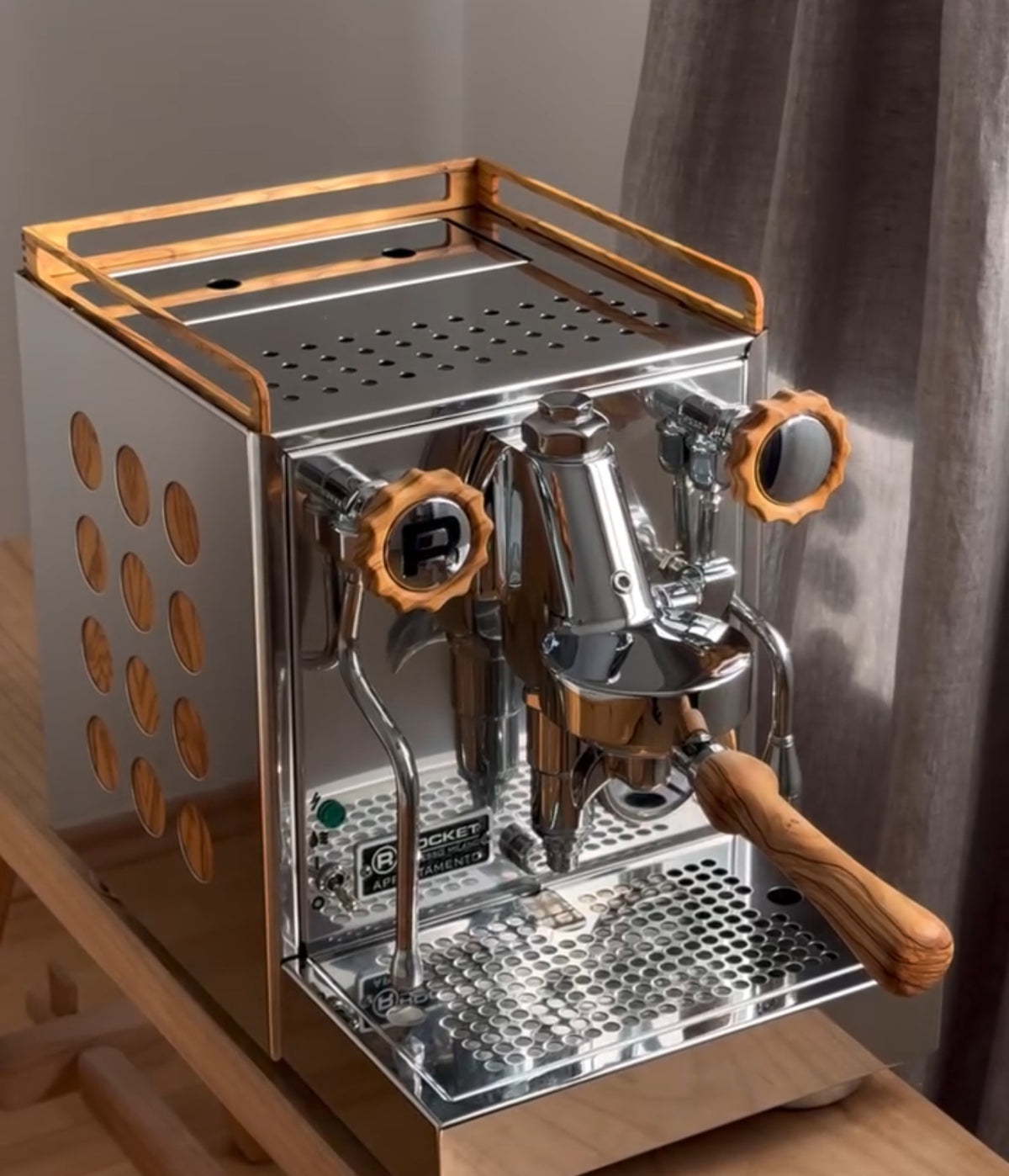 Tai ne tik dizaino atnaujinimas – tai būdas sukurti espresso aparatą, kuris jaučiasi asmeniškas. Kiekviena medinė dalis turi savo struktūrą, savo išraišką. Rezultatas? Rocket Appartamento išsiskiriantis – tiek jausmu, tiek charakteriu.