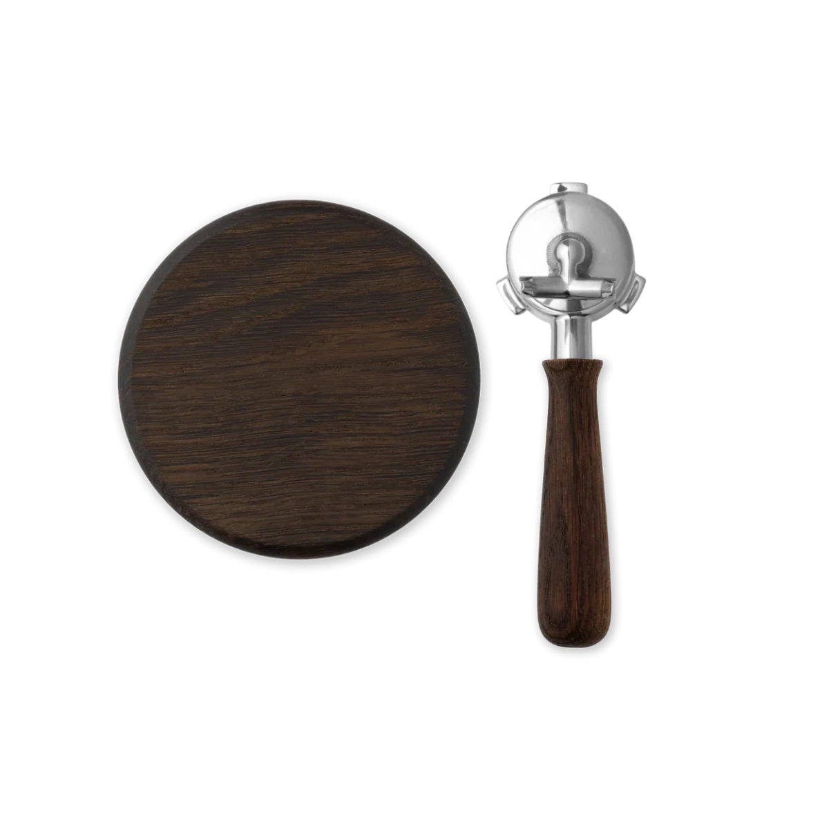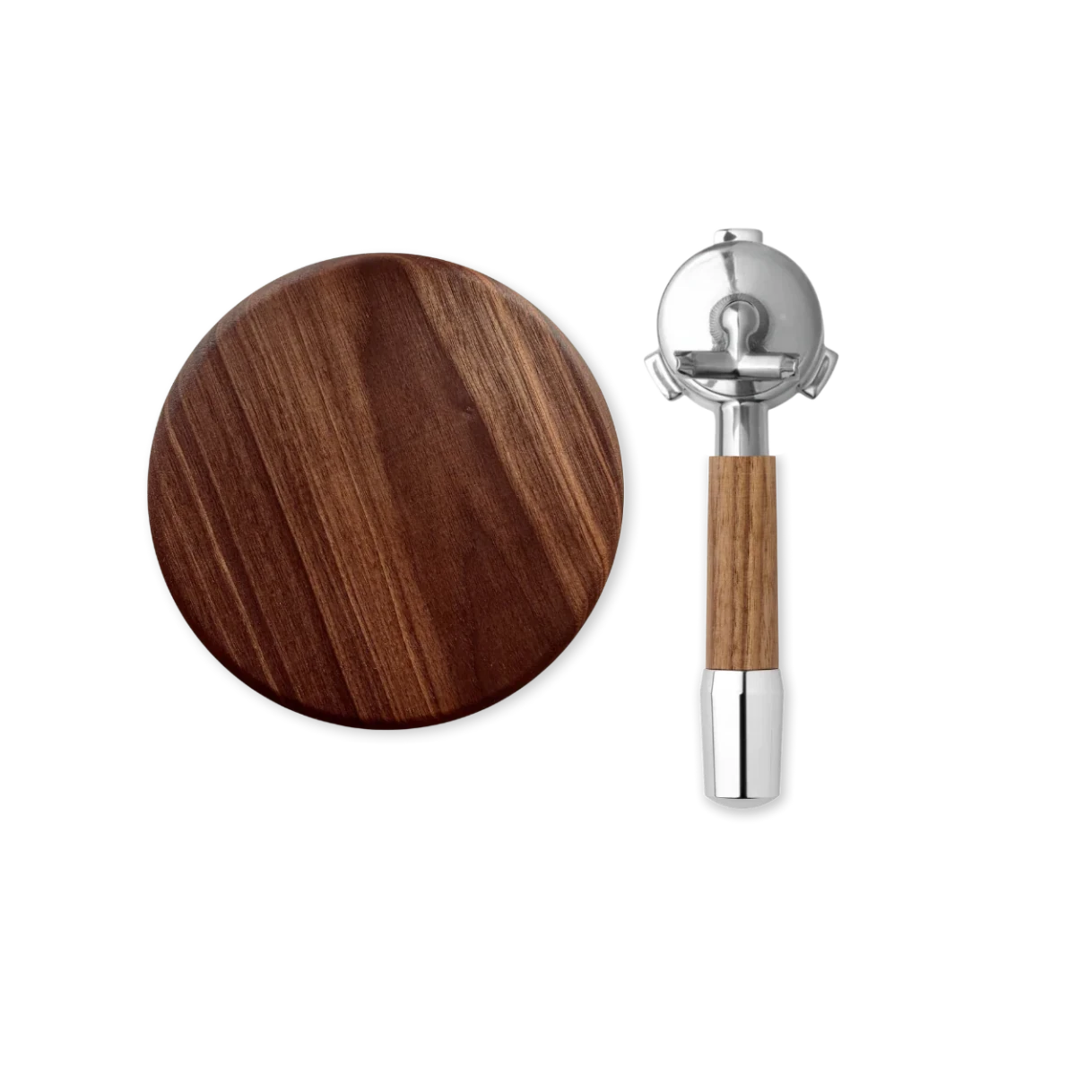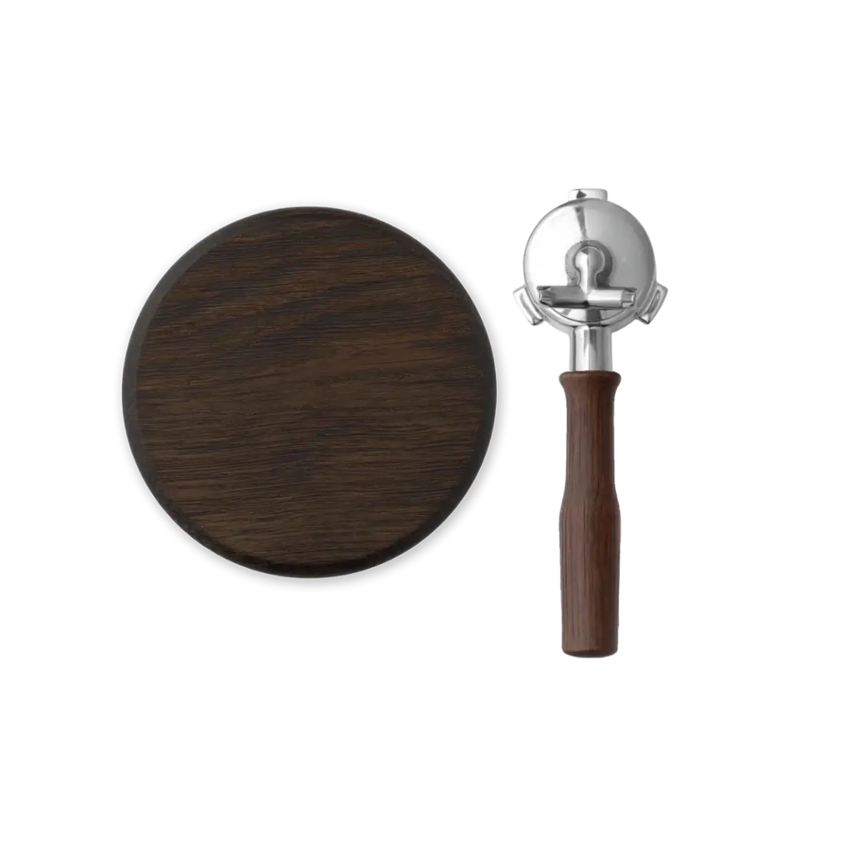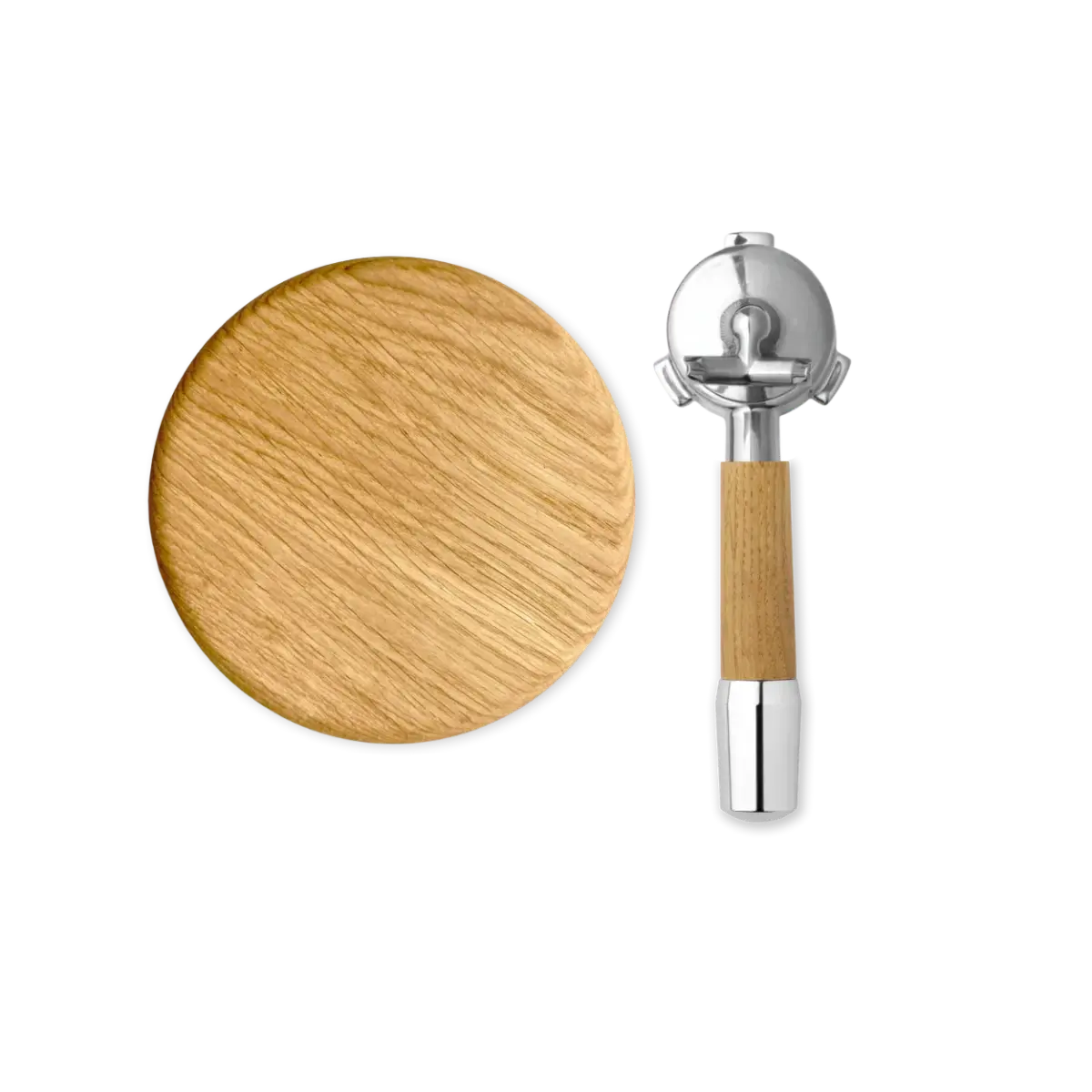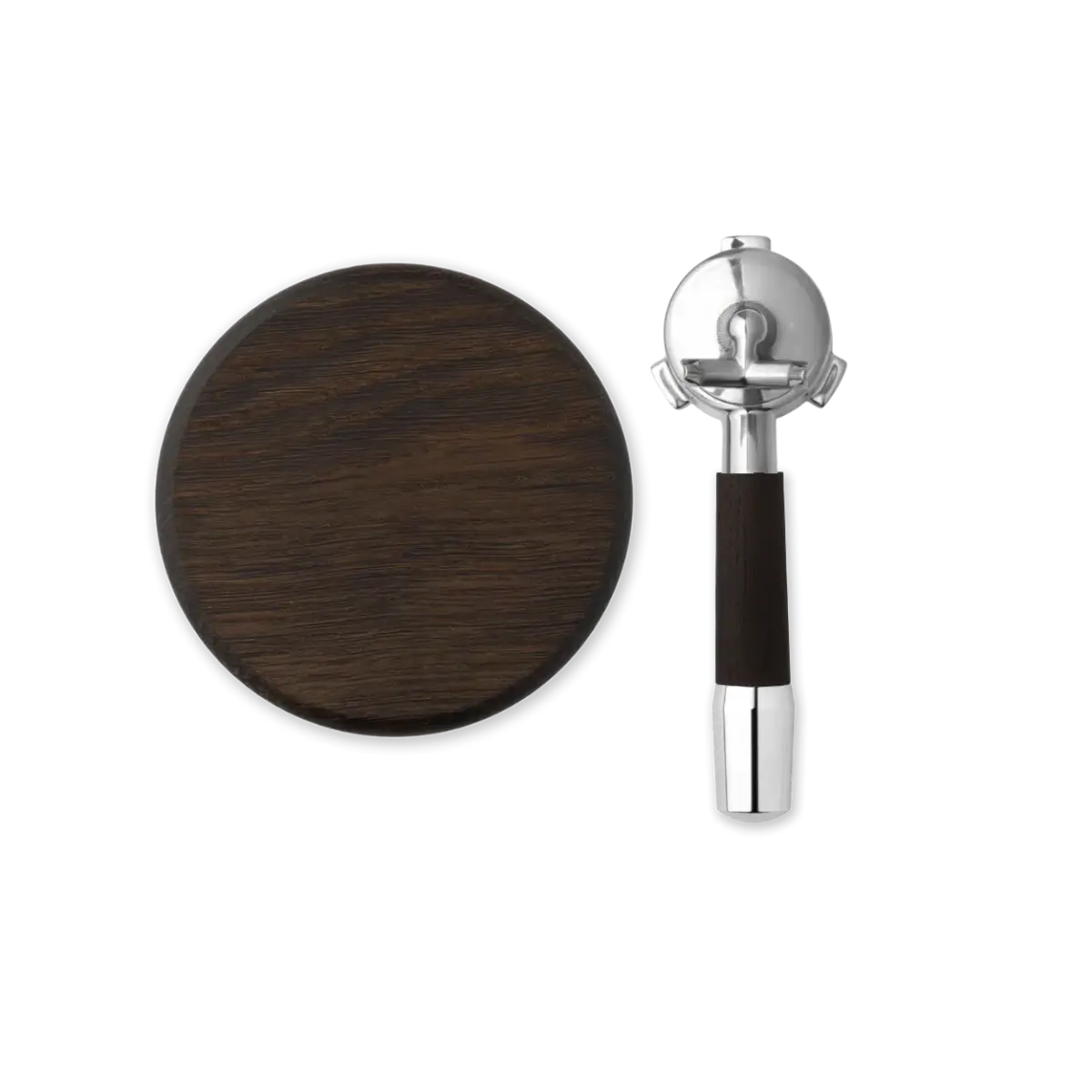 Rinkinį sudaro 1 x medinė dangtelis pupelių laikikliui ir 1 x espresso portafiltras su medine rankena. Espreso aparatas nėra įtrauktas.