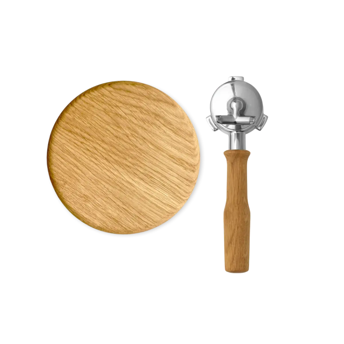 Pakete rasite medinį dangtelį pupelių laikikliui, sukurtą geresniam pojūčiui ir harmoningesnei išvaizdai, bei portafiltrą su medine rankena, kurį galite rinktis tarp BAARK dizaino arba TCA dizaino. Kartu šios dalys sukuria vieningesnę ir aukštesnės klasės kavos stotelę.