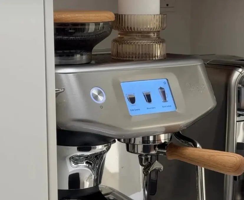 Šis rinkinys sukurtas tiems, kurie nori derinti profesionalumo pojūtį su stilingu dizainu. Visos dalys yra tiksliai pritaikytos Sage Barista Touch Impress, suteikiant geresnę kontrolę, saugesnį sukibimą ir labiau apgalvotą bendrą įspūdį kiekvieno paruošimo metu. Nuotraukoje aiškiai matyti šiltas medžio tonas kartu su metalo švaria apdaila, kas pakelia mašinos vizualinį įvaizdį, neperimant dėmesio.
