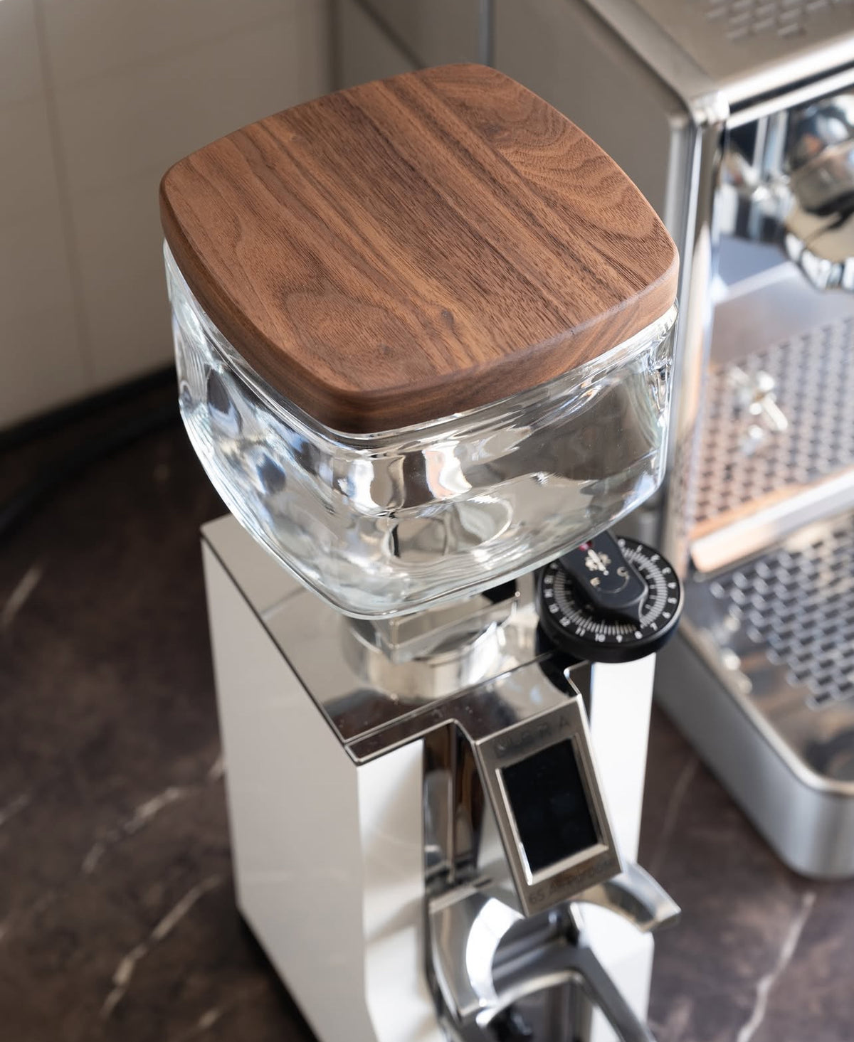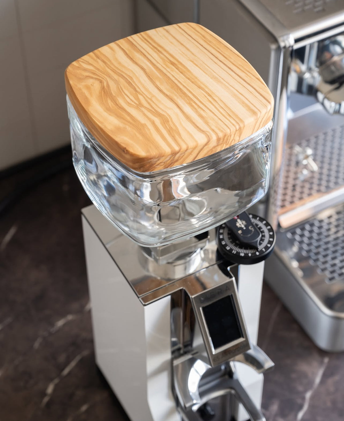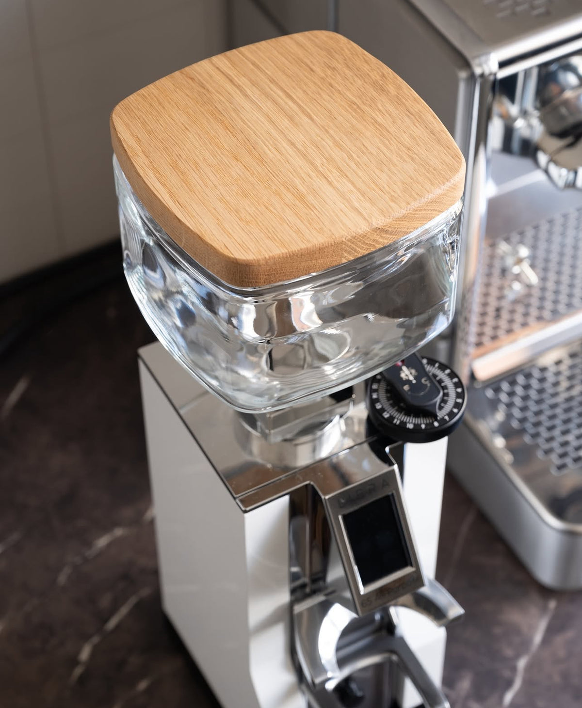 Šis rankų darbo medinis dangtis yra pagamintas pagal užsakymą Eureka „Mignon's“ 500 g stiklinis indas. Paprastas, bet stilingas būdas pagerinti kavamalės išvaizdą ir pojūtį – puikiai tinka tiems, kurie vertina medžiagas su siela.