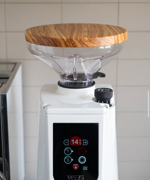 Patobulinkite savo kavamalę stilingu kavos malūnėlio dangteliu iš Wiedemann Pagaminta. Rankų darbo iš medžio masyvo ir sukurta taip, kad tiktų Eureka Atom 300 g talpos indelis yra tobulas – tiek funkcionaliai, tiek estetiškai.
