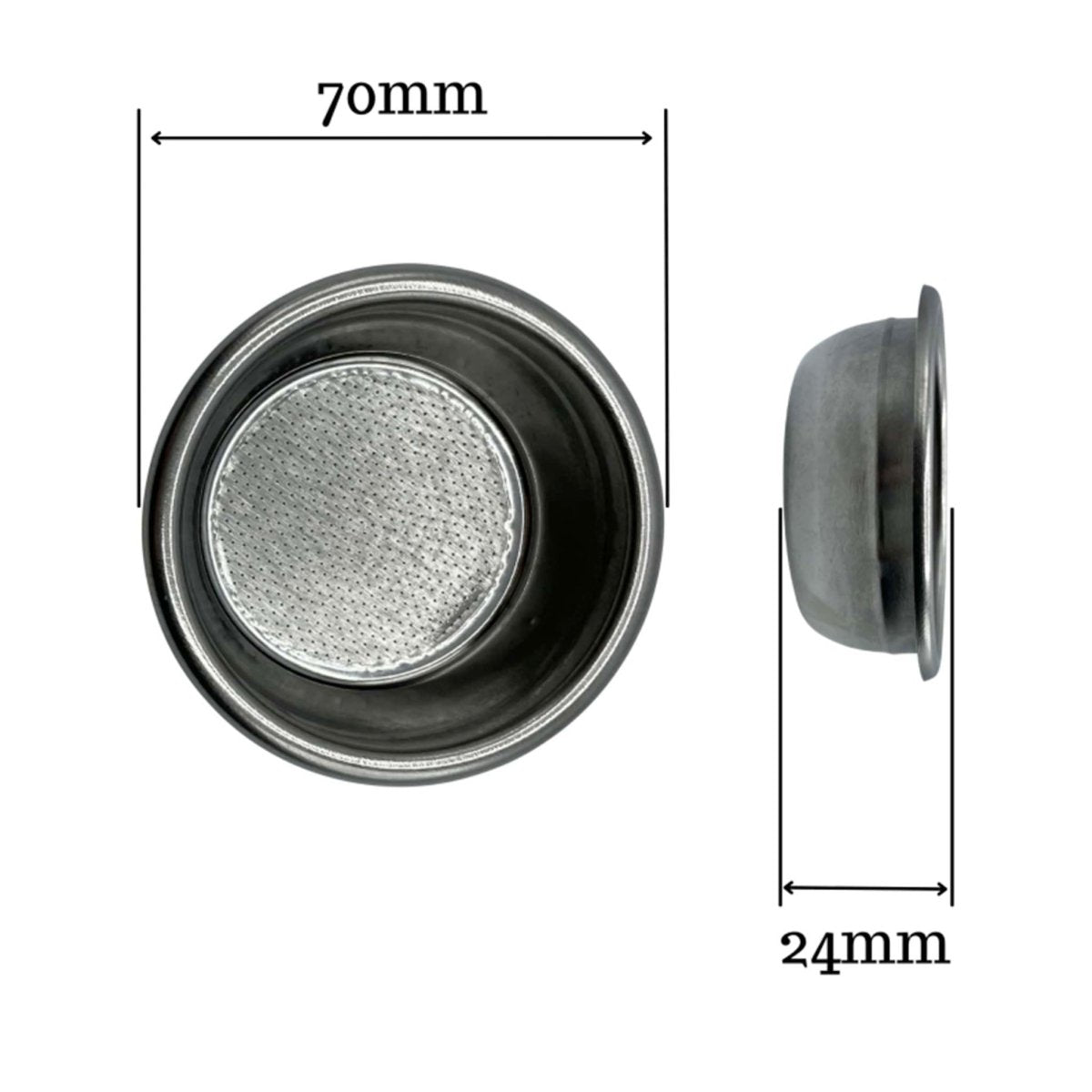 Šis 14–16 gramų dvigubas krepšelis su išoriniu kraštu yra standartinio dydžio, tinkantis daugumai komercinių ir profesionalių espreso aparatų. Jis leidžia dozuoti tinkamą kavos kiekį dvigubam espreso ekstrakcijai, užtikrinant nuoseklų skonį ir aromatą.