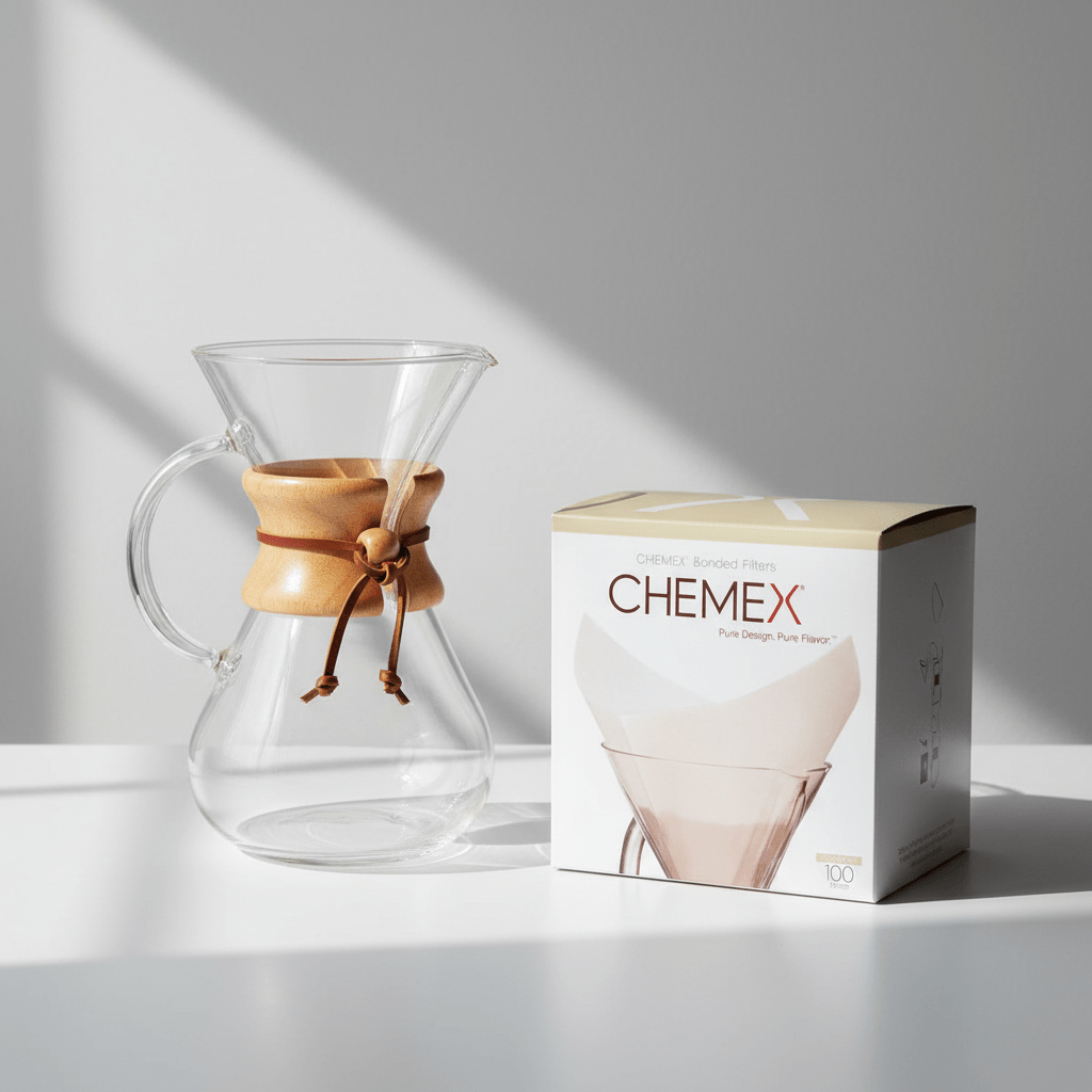 Chemex derina elegantišką formą su funkcionalumu. Storas, specialiai sukurtas filtras pašalina aliejus ir nuosėdas, suteikdamas išskirtinai švarią ir aromatingą kavą. Puikiai tinka tiems, kurie nori patirti visus kavos niuansus.