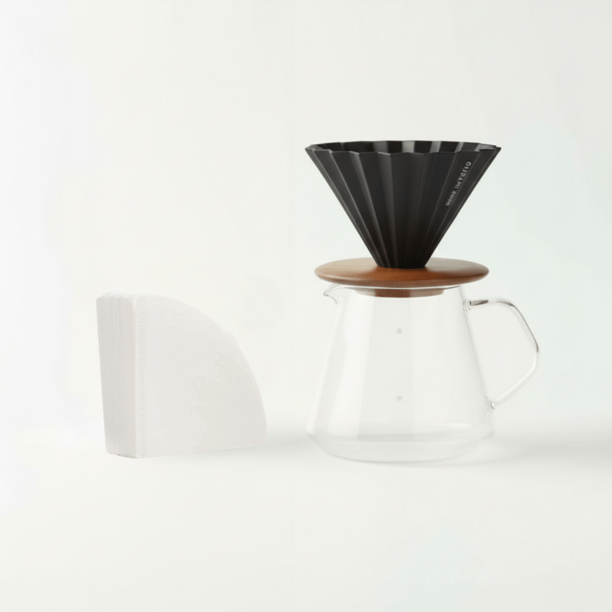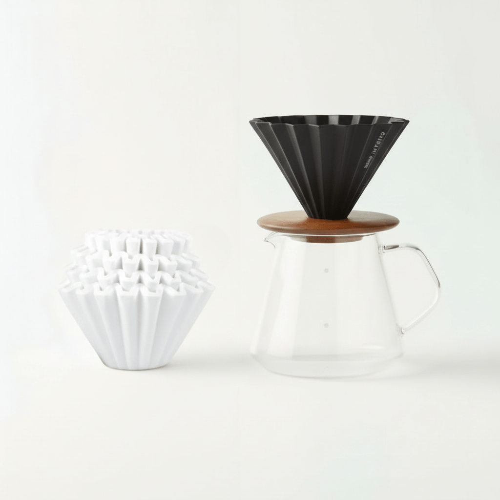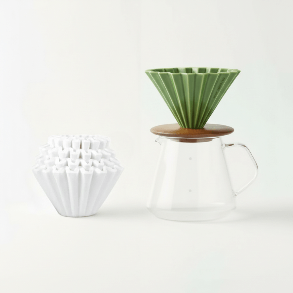 Origami dripper tapo mėgstamiausiu baristų visame pasaulyje dėl savo gebėjimo išryškinti kavos natūralų saldumą ir sudėtingumą. Su šiuo rinkiniu gausite viską, ko reikia japoniškos kavos ruošimo kultūrai patirti namuose – nuo pirmojo ruošimo iki tobulos puodelio.