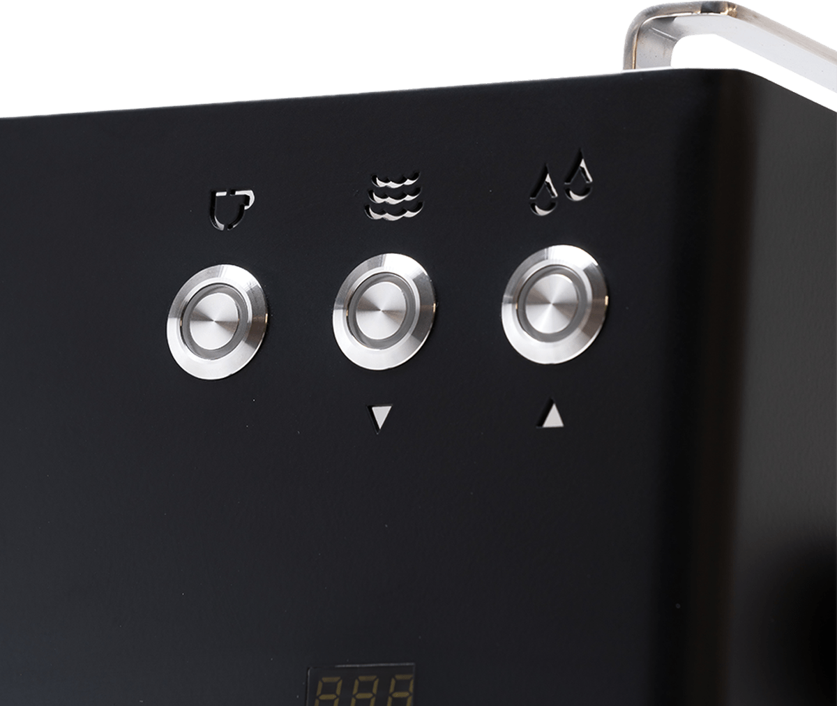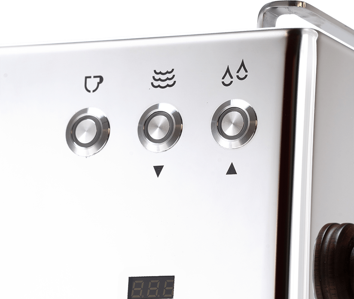 Valdymas: PID; ekranas (temperatūra, porcijos laikmatis, nustatymai); programuojamas priešužpildymas, ekologiškas ir budėjimo režimai; pompos slėgio matuoklis 0–16 bar; profiliavimo vožtuvas; vandalams atsparūs apšviesti mygtukai; įjungimo/išjungimo jungiklis