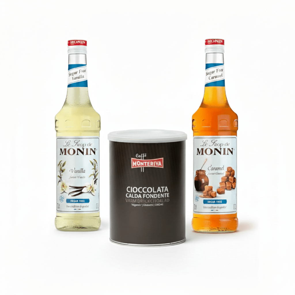 Santa's Sweet Trio apjungia viską, ko reikia prabangiems karštiems gėrimams namuose kurti. Šis rinkinys apima tris aukštos kokybės produktus, kurie kartu suteikia begalines galimybes mėgautis itališku karštu šokoladu, skoniniu kava ir kūrybingais moka variantais.